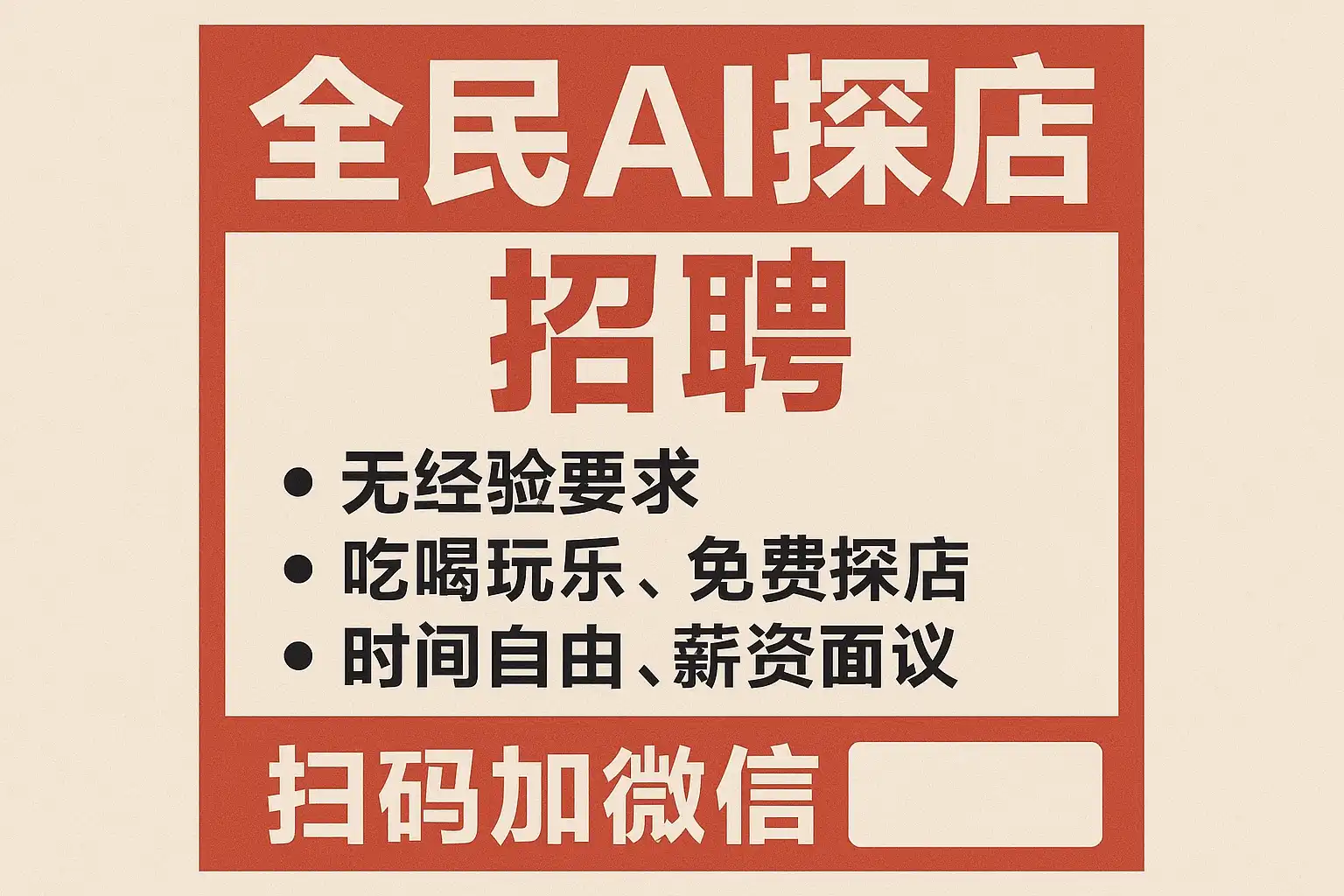 - 线下优先招聘:店门口海报“Now Hiring”、橱窗贴纸、店内二维码、短视频投递入口
