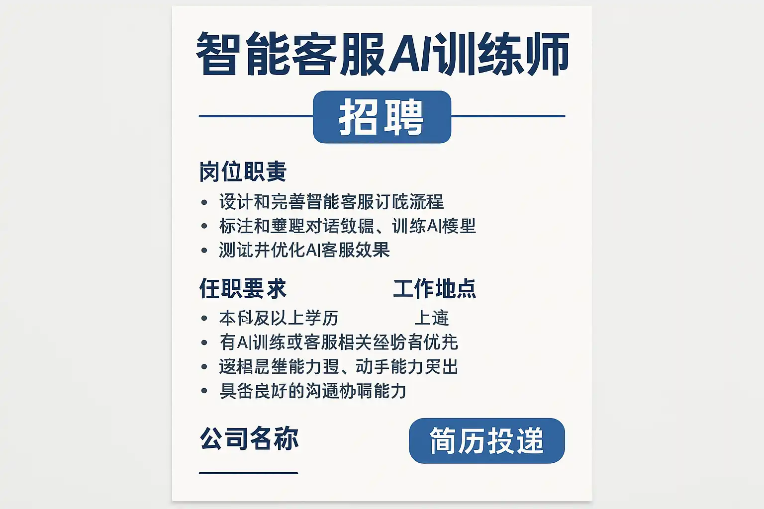 - 岗位名称:智能客服AI训练师(AI Customer Service Trainer)