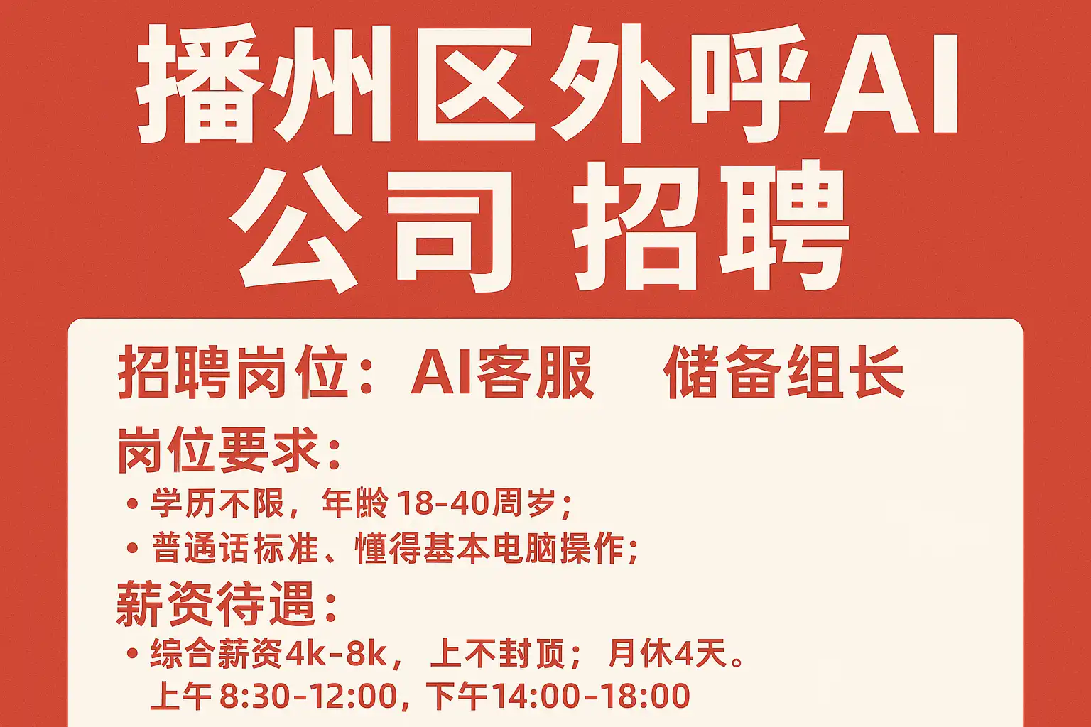 播州区外呼AI公司招聘最新信息,如何快速应聘成功?