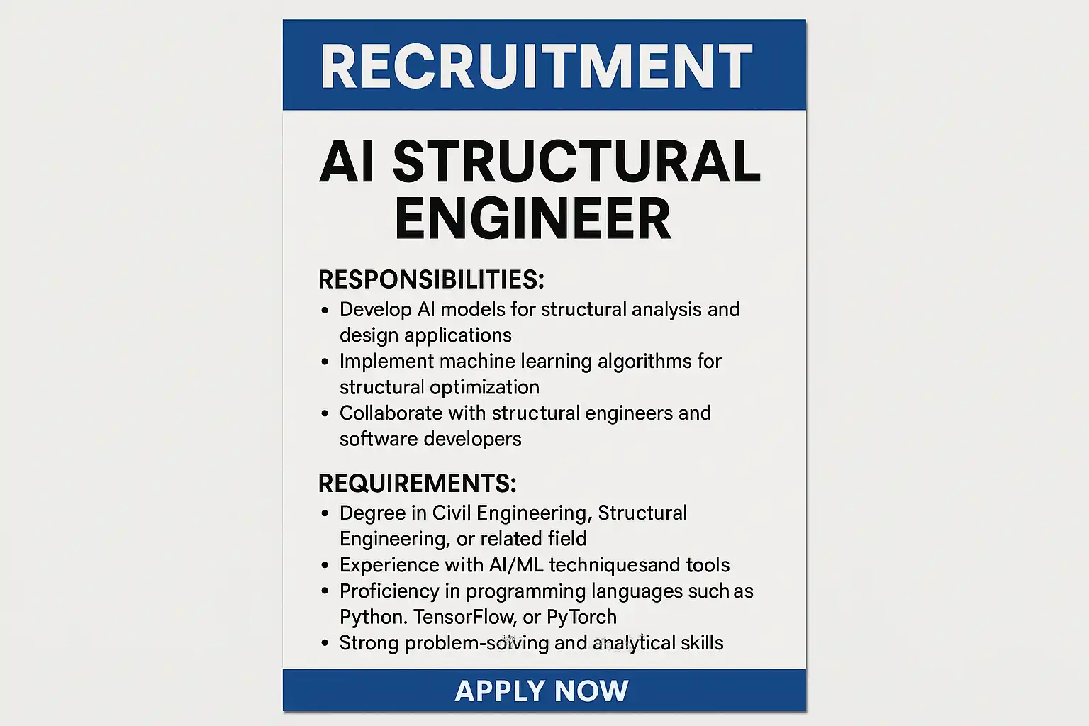 关键词建议:AI结构工程师招聘、生成式AI工程、结构健康监测、数字孪生、CAE代理模型、AEC自动化。