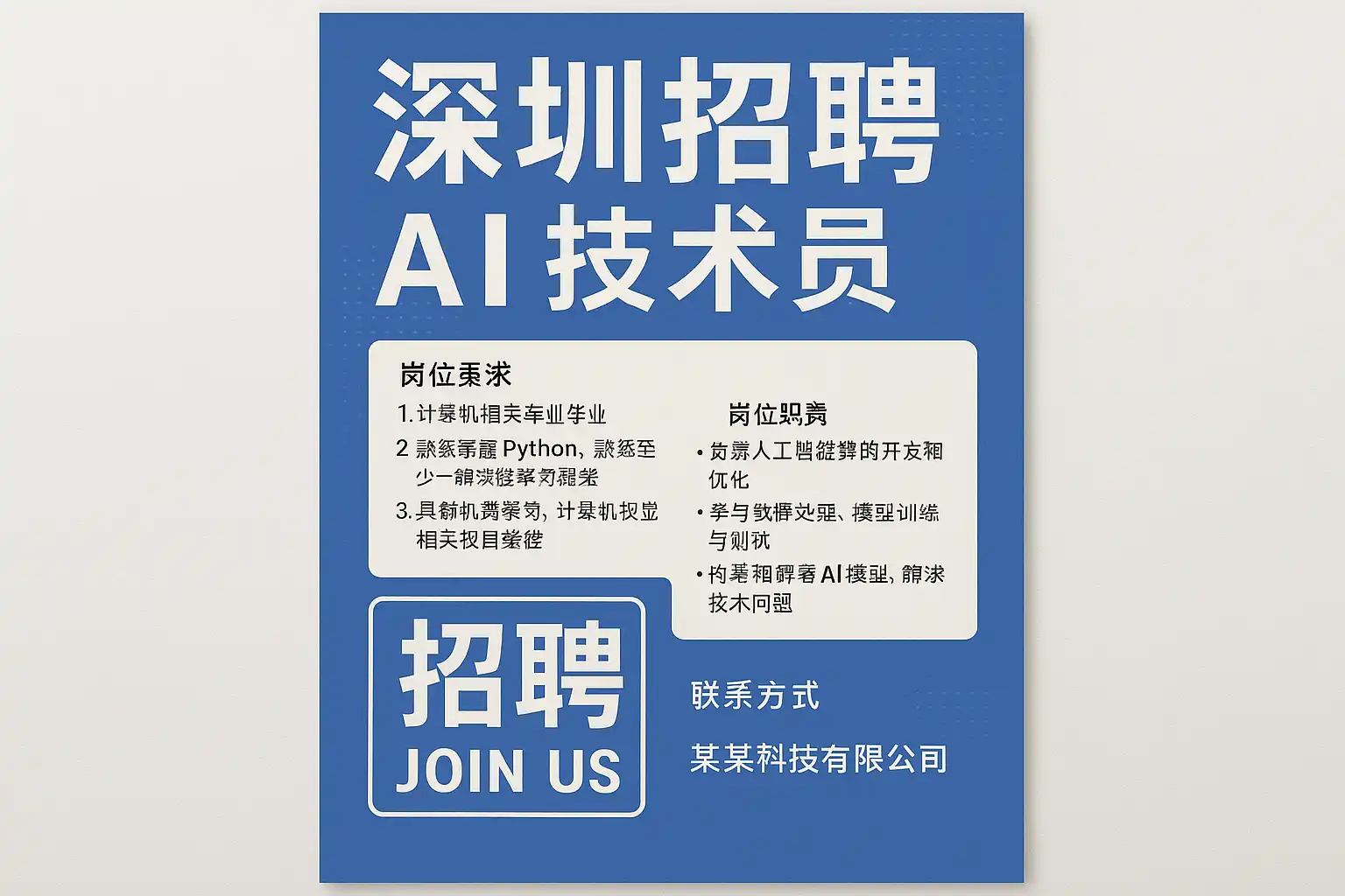 深圳AI技术员招聘信息通常包含以下关键内容: