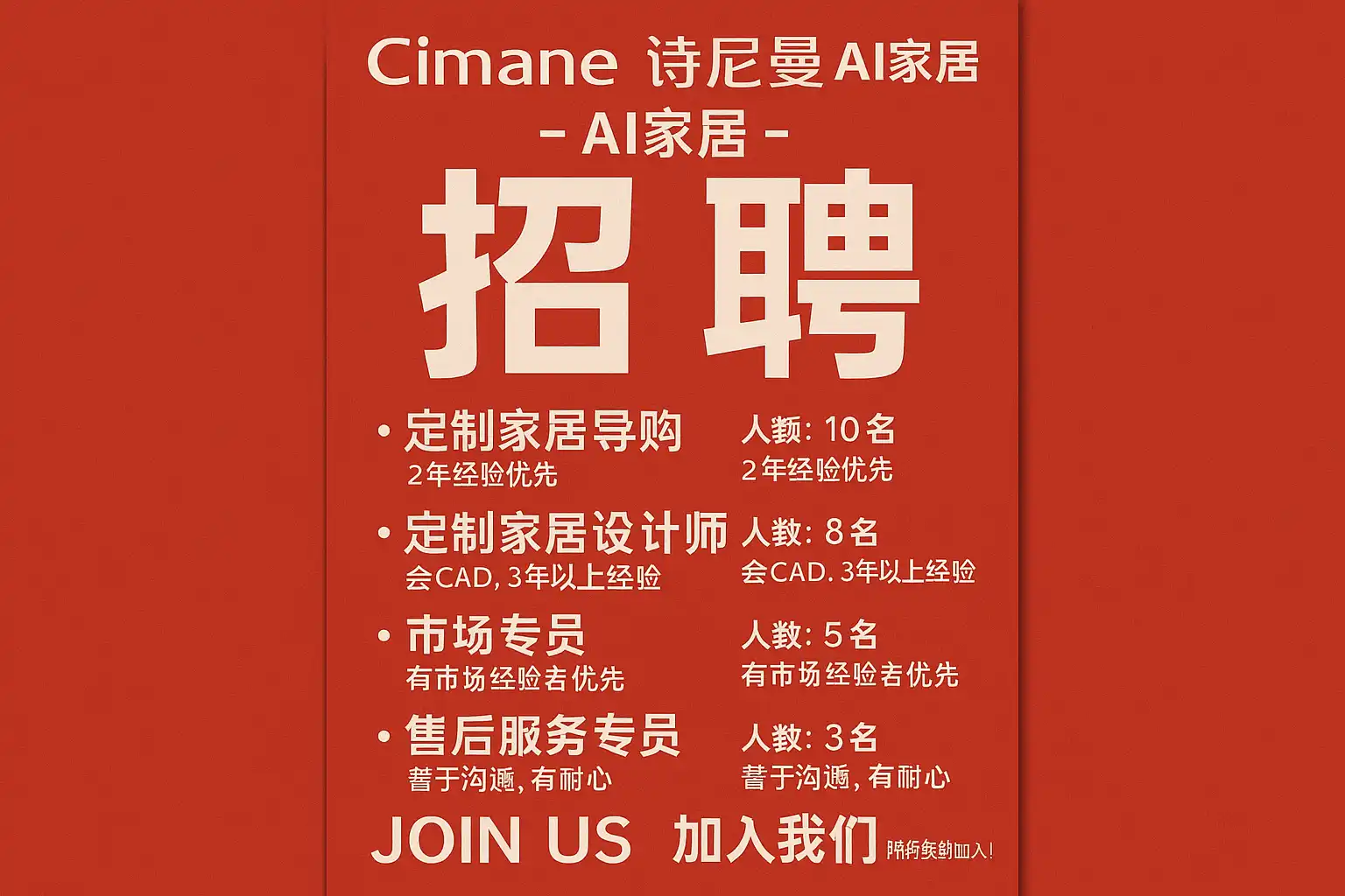 我对加入菏泽诗尼曼AI家居很感兴趣,但不知道他们招聘岗位对技术和工作经验有什么具体要求,想提前做好准备。