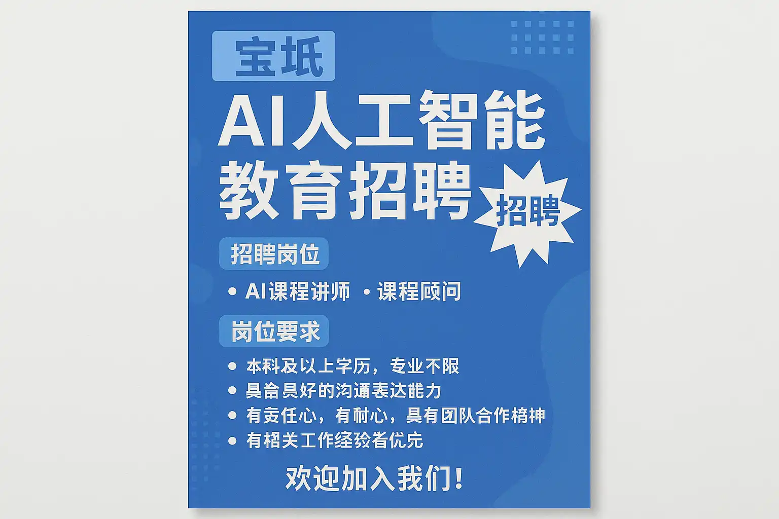 提示:招聘广告常出现“AI+教育”“智能教学”“生成式AI辅助教学”“数据驱动教研”等关键词,与“人工智能教育招聘”“宝坻AI岗位”组合检索更精准。
