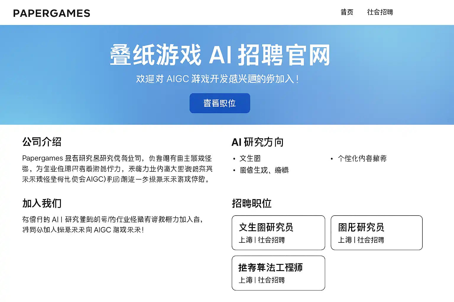 - site:papergames.com AI 招聘