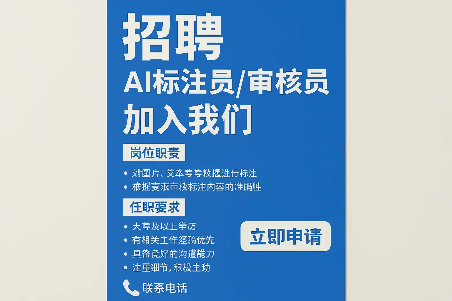 - 关键词提示:AI标注招聘、审核员质检、数据标注岗位、远程、合同制、ATS系统。