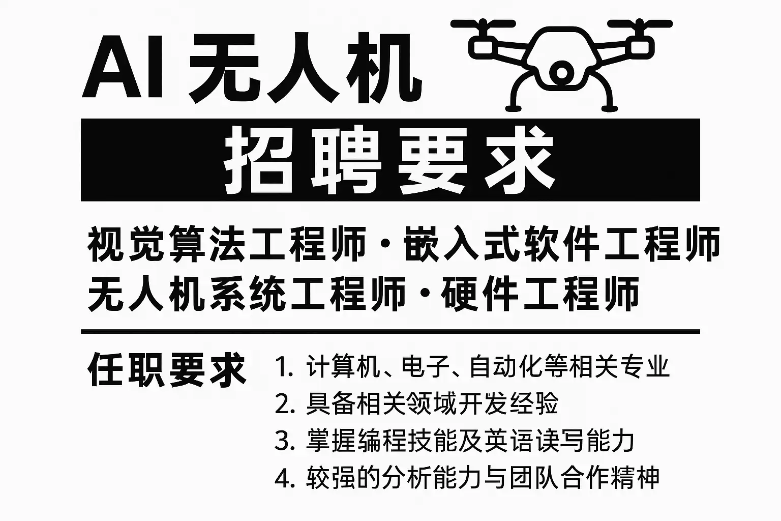 研发与算法岗位是 AI 无人机厂招聘的“硬门槛”。应聘条件通常要求候选人具备坚实的控制、感知与系统工程基础,并能在真实飞行器环境中调试。