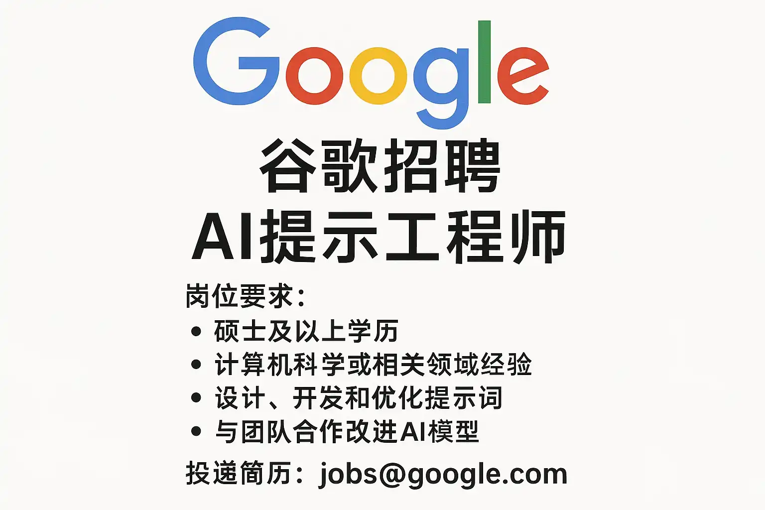 谷歌招聘AI提示工程师通常要求: